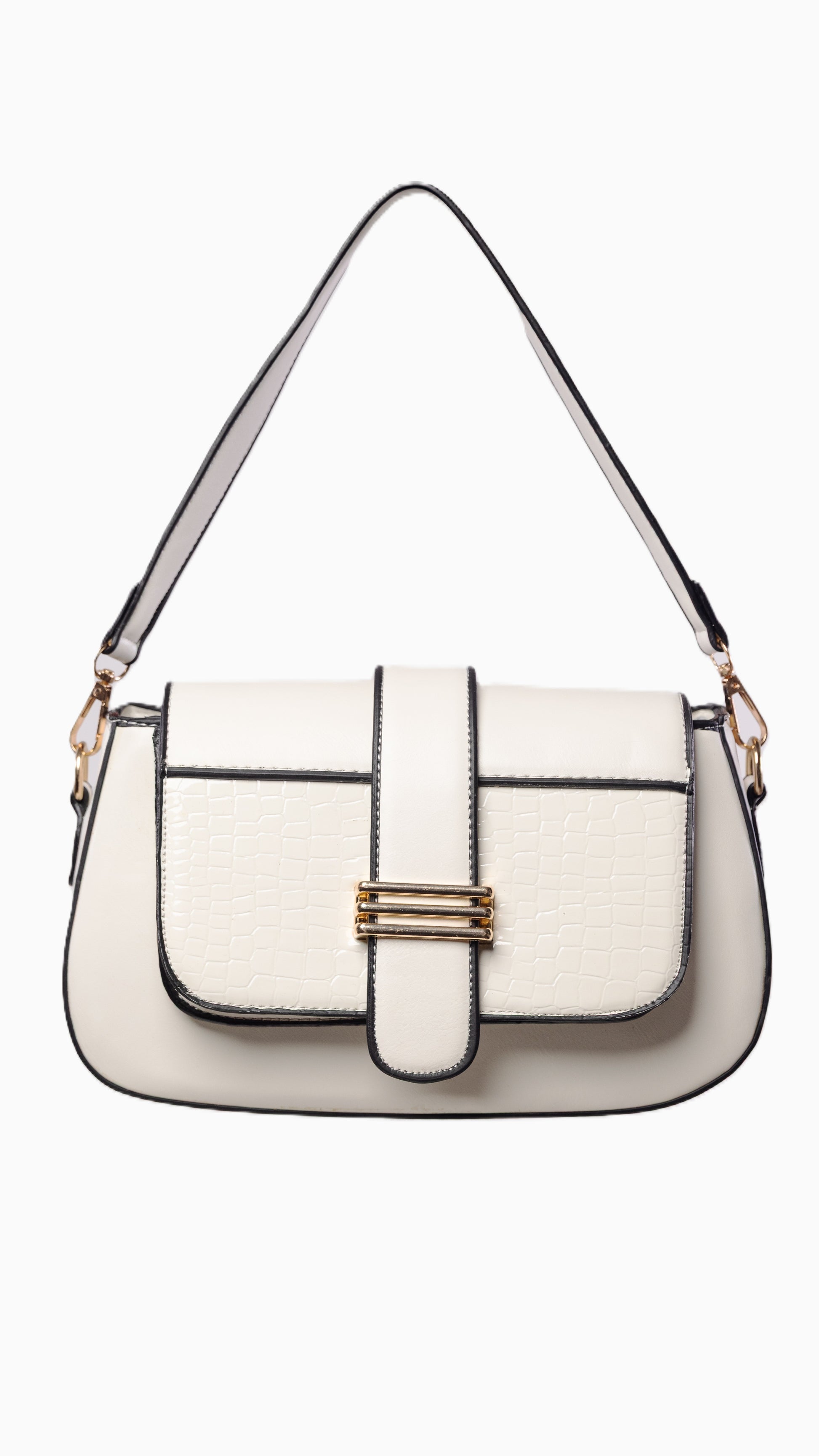 Sac Orta, Élégant et original, ce sac associe une surface lisse avec un rabat texturé effet reptile pour un style unique et sophistiqué. Son anse confortable permet un porté épaule tendance, tandis que ses finitions dorées ajoutent une note glamour. Parfait pour celles qui recherchent un accessoire pratique et distingué à la fois.